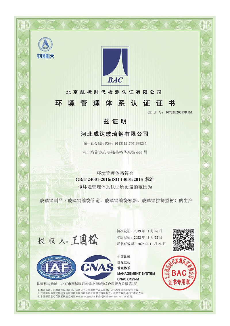 環(huán)境管理體系認(rèn)證證書(shū)